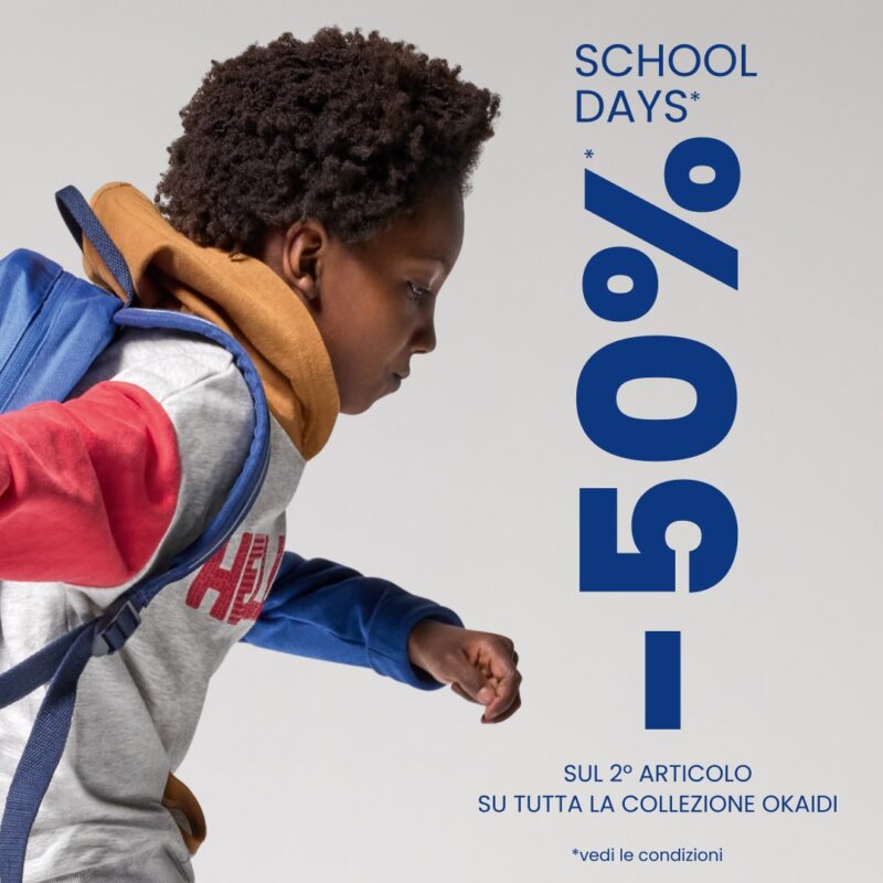 Torna a scuola con stile! Approfitta degli SCHOOL DAYS: -50% sul secondo articolo su una selezione di prodotti Okaïdi! Cosa aspetti? Corri in negozio da Okaidi